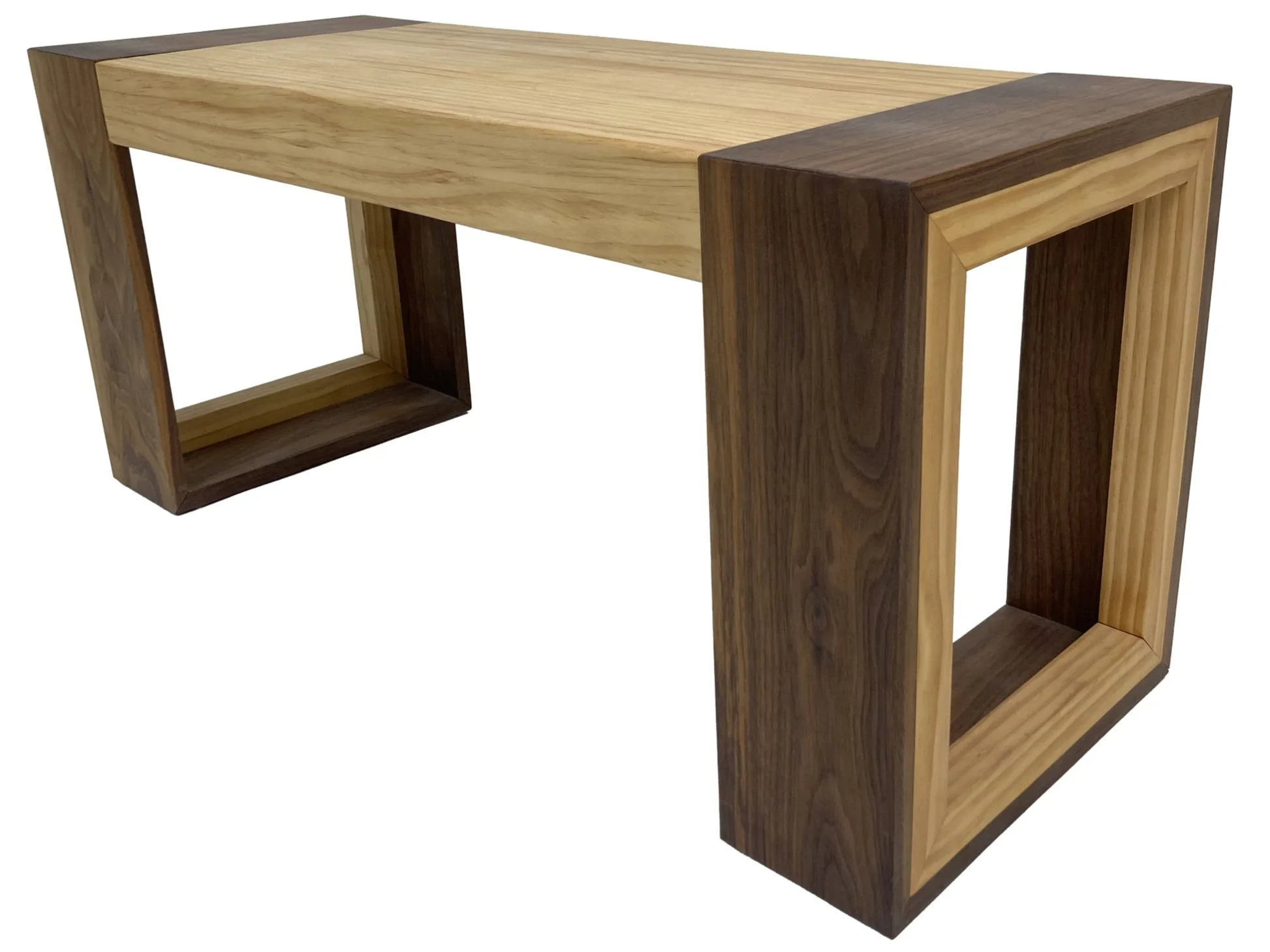 The central theme of biomimicry guided the development of the twisted branch headboard design, where steel was shaped to mimic a tree branch, creating an organic form that complements the live edge of the hardwood slab below.